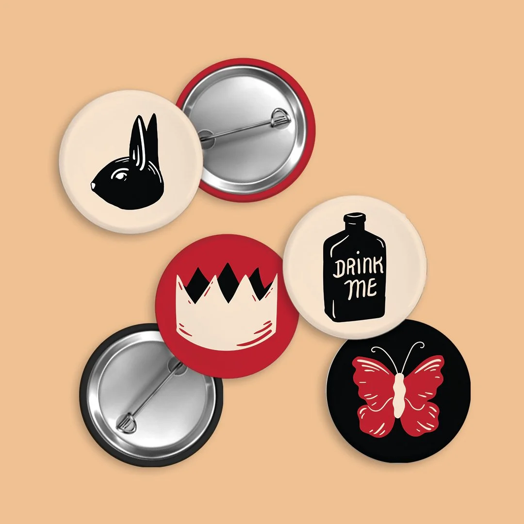 The company wanted a graphic icon to represent each original production and project they have worked on. These logos are used on their website, social media, and on merchandise. For each new image we used the line-drawing style and bold black and white of their Bad Hats logo. Over the years, this has amounted to a collection of eye-catching icons which tease at the breadth of their work.